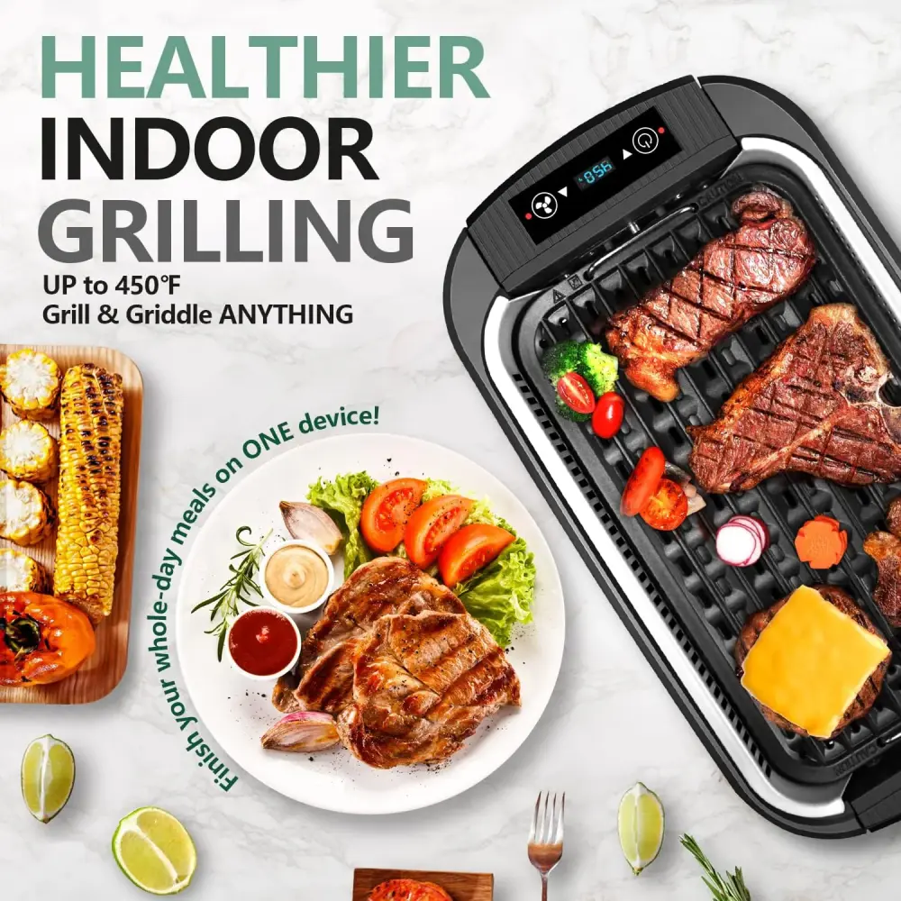 - [Heats Fast & Cooks Evenly]–With the Double U heating tubes, Our indoor grill provides food the fast and consisite