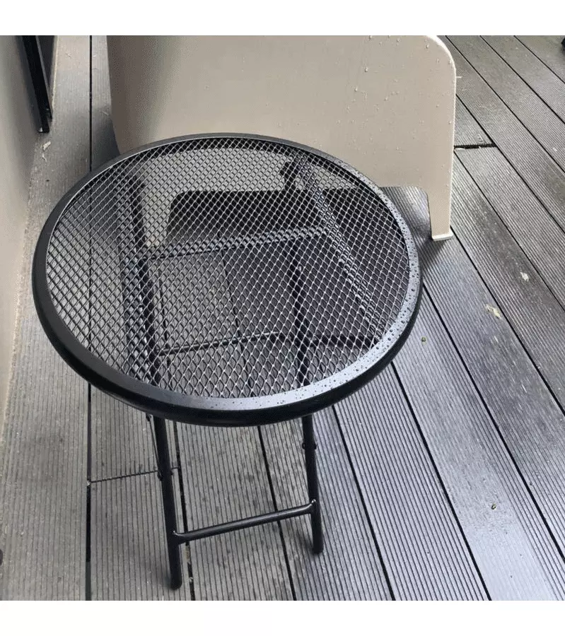 Whether you’re saving space on a small patio or just looking for convenient seasonal furniture with compact storage. this 18-Inch Steel Mesh Patio Folding Table makes a versatile addition to your outdoor furniture. Designed with a steel frame in a rust-resistant black finish. this folding patio table pairs easily with a variety of chairs and other outdoor furnishings and decor. The 20-inch height and 18-inch mesh tabletop diameter provide a convenient footprint for serving drinks and snacks for one or two people or simply perching decorative items like a potted plant or outdoor lantern. Plus. the folding design makes this steel patio table easy to store away between uses or over the winter.