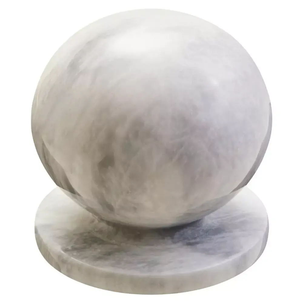 Handcrafted from natural marble, this modern design sculpture combines a globe shape with a robust plinth base. The soft grey veining and clean finish make it an classy display piece for shelves, mantels, or tabletops in both modern and classic interiors. *This product is handcrafted, colours may vary due to the nature of the product.*