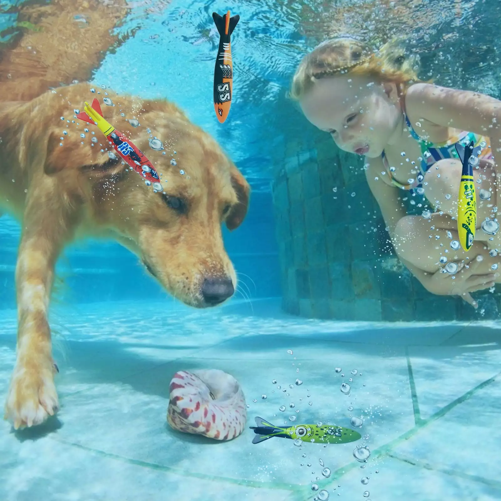 Watch them with a unique hydrodynamic design. and the toy can 20 feet underwater. allowing you to play catching and other games underwater